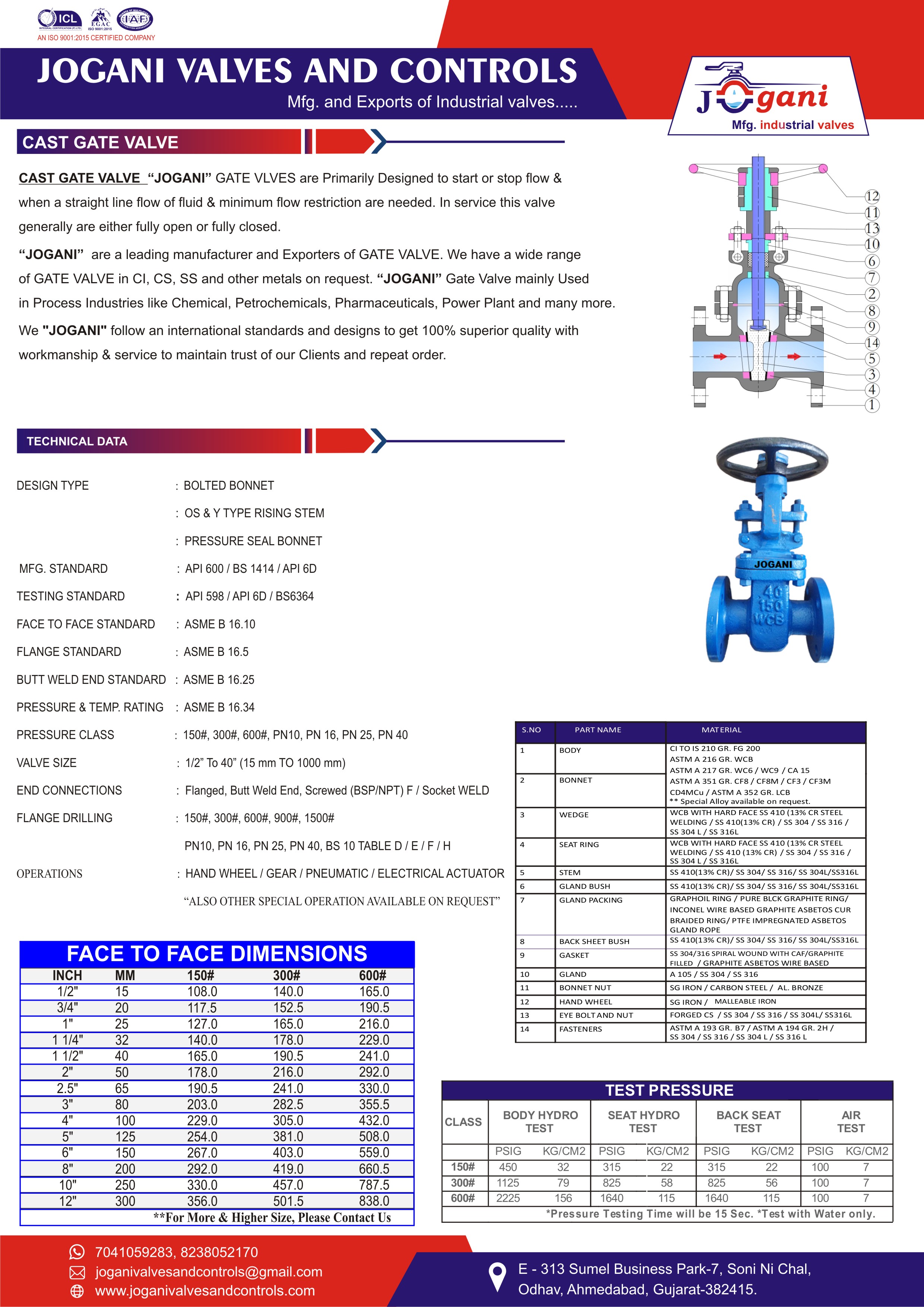 "JOGANI" GATE VALVE design is developed with following and using international Standard For Having An International Competency with Global Manufacturers.